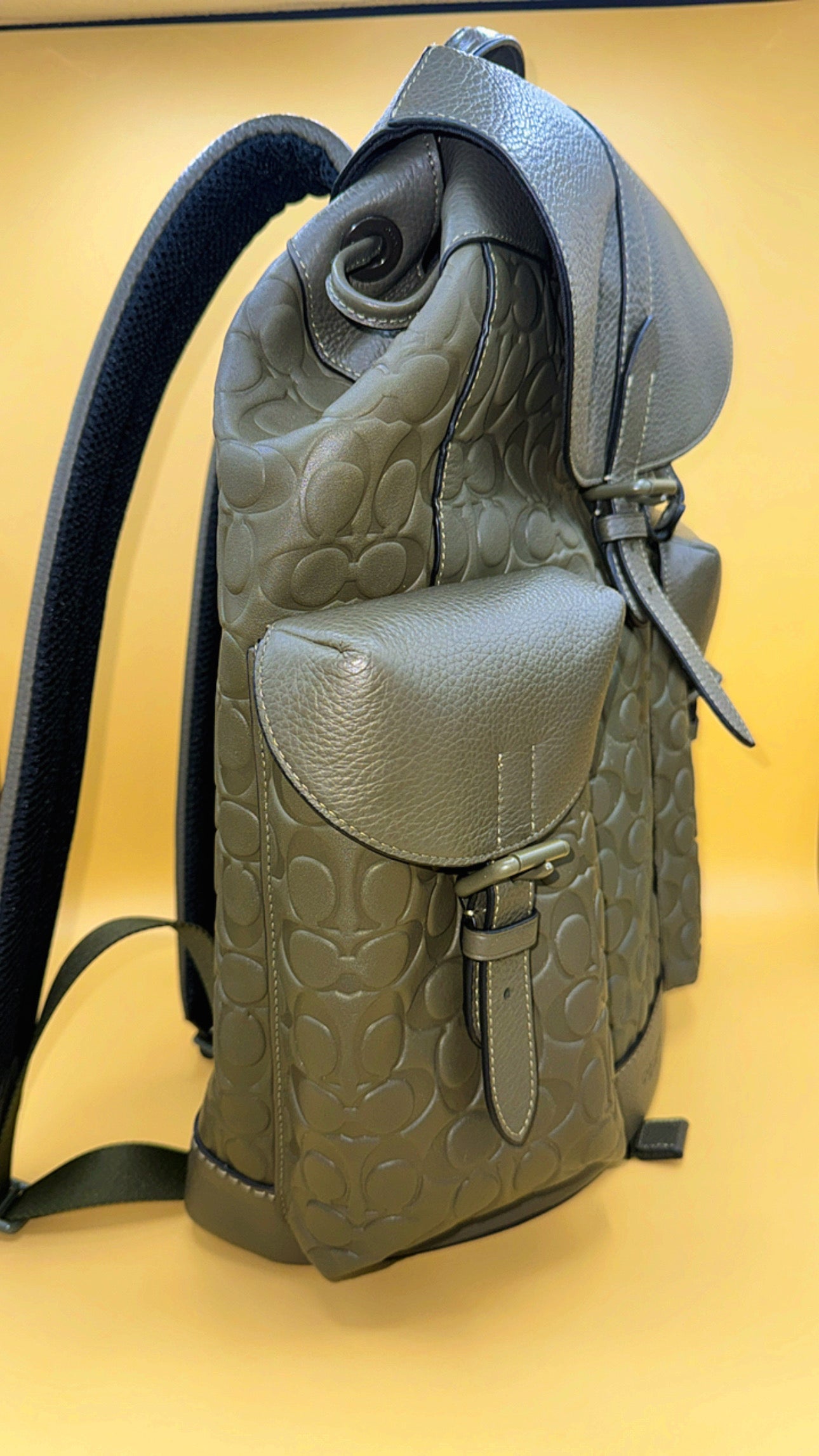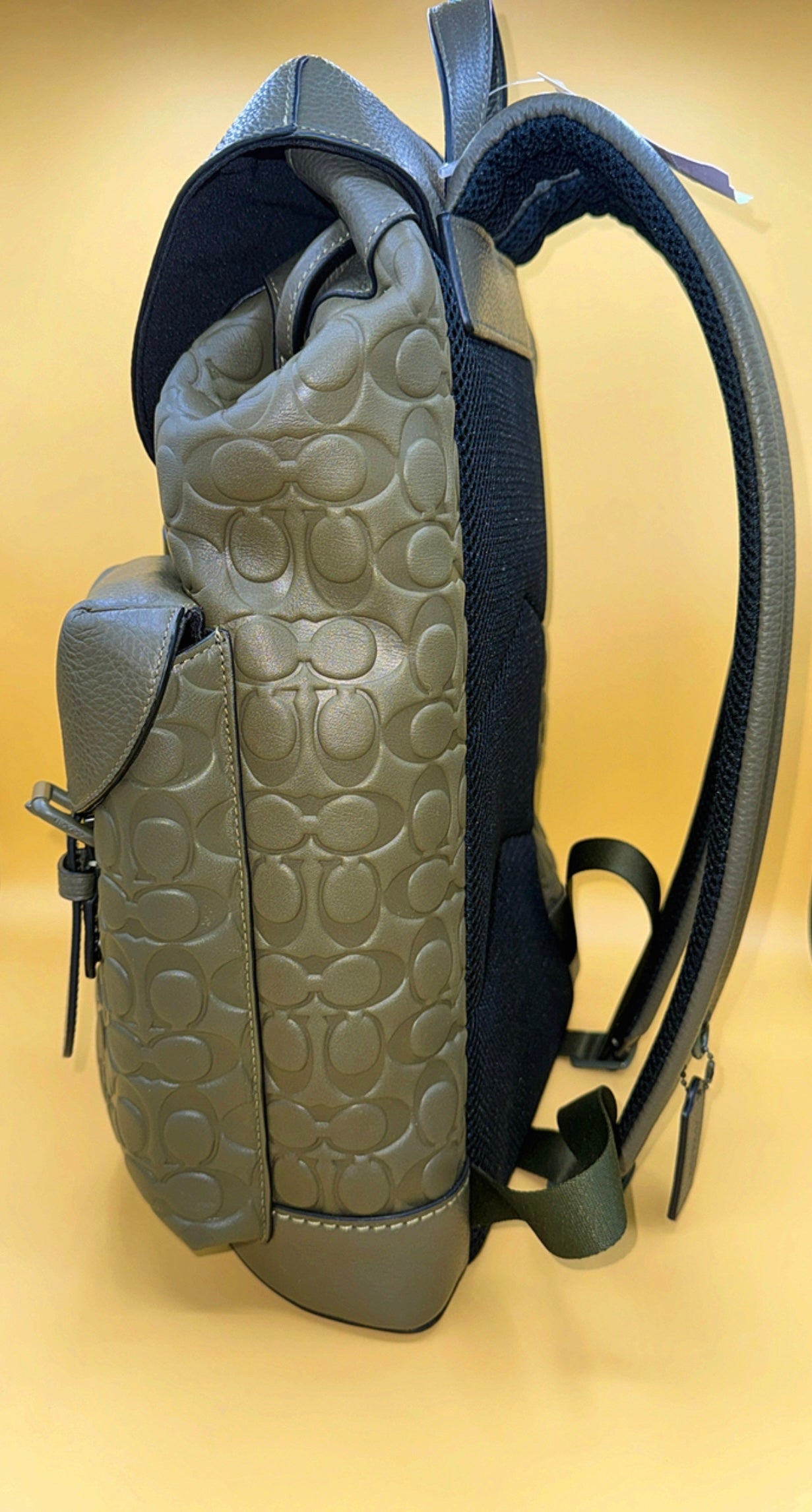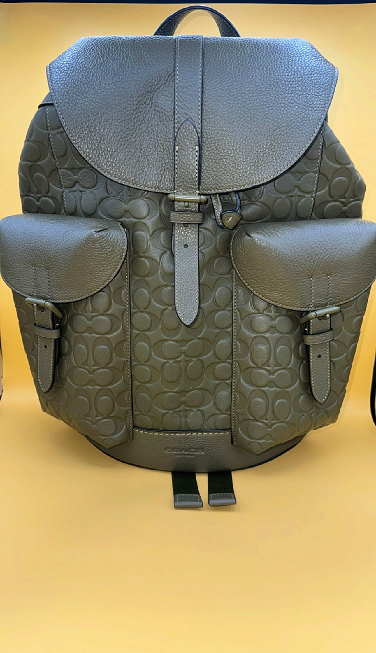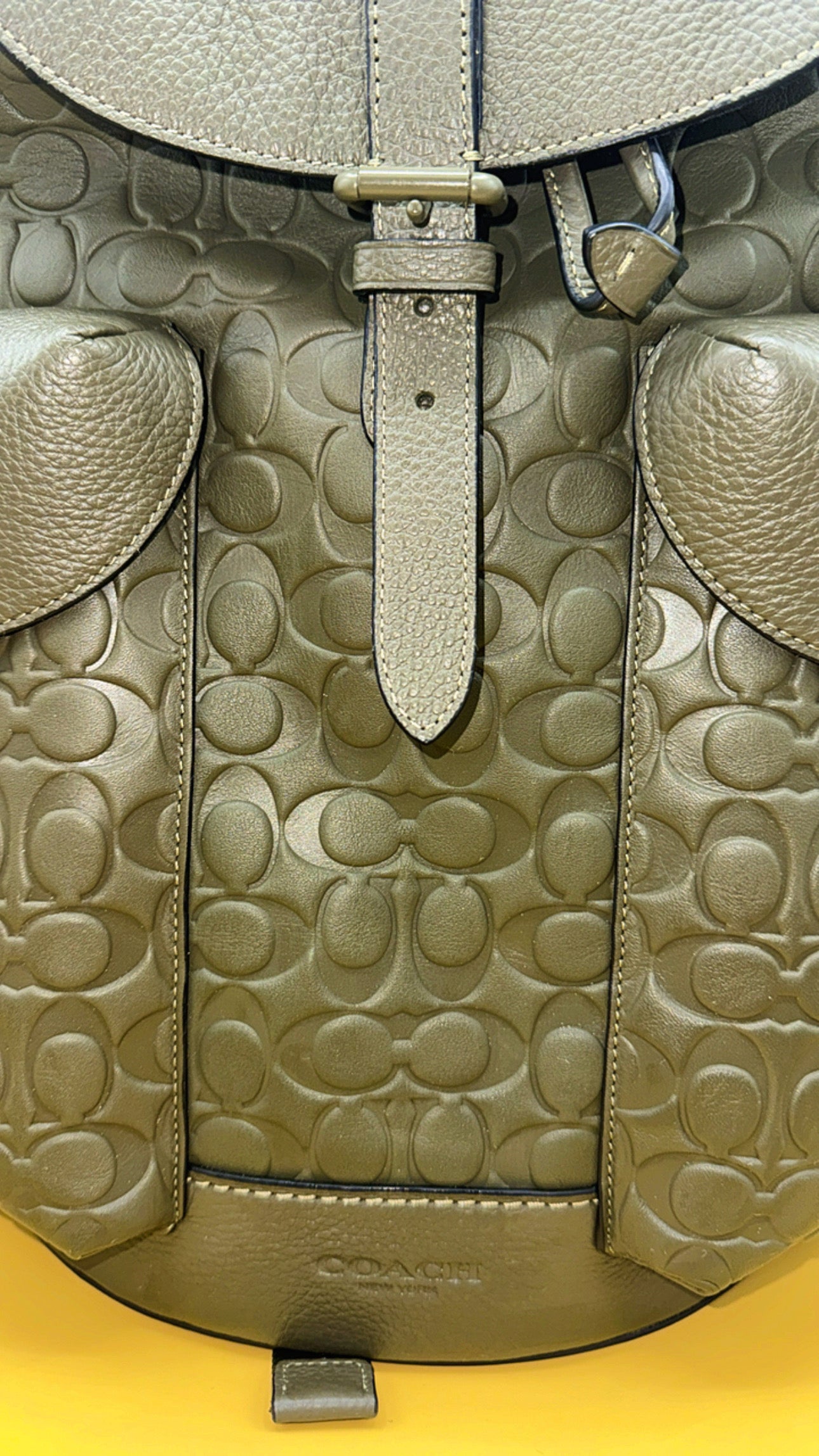 Beautiful leather book bag embossed with the famous Coach logo.